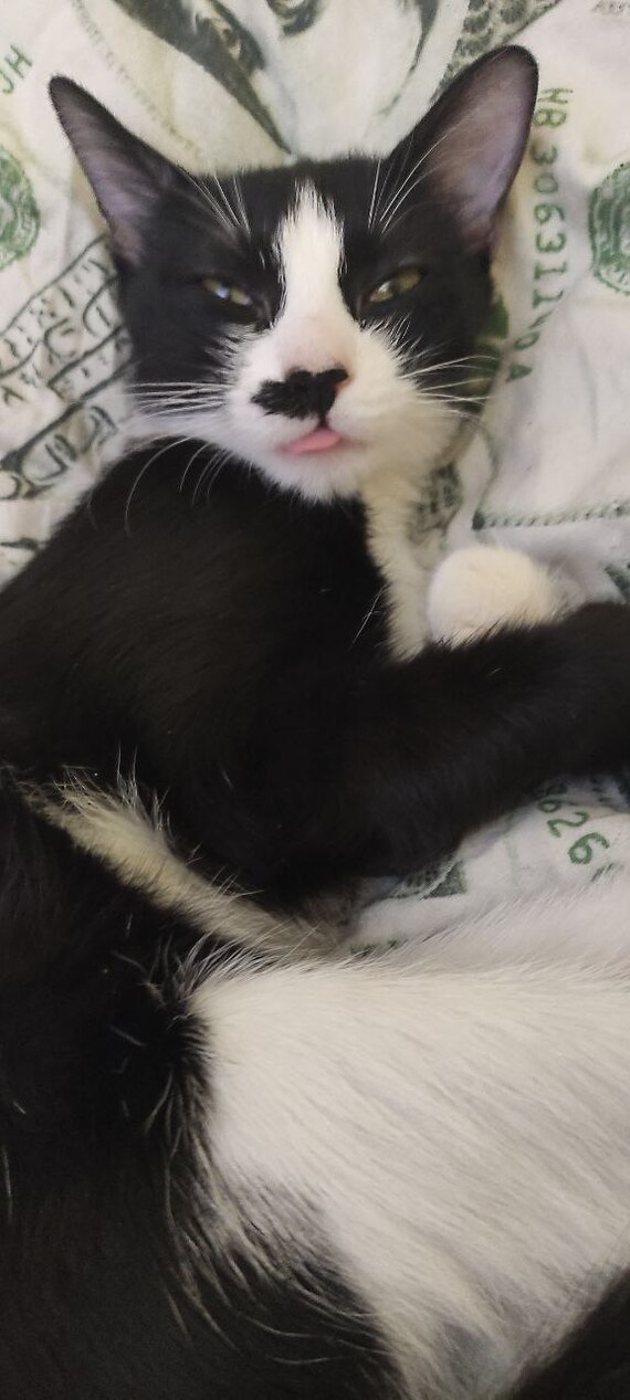 Но кушает котя охотно, пьет тоже. Пытается шастать по дому, даже потерялся вчера, уснув в ящике под кроватью (и обосравшись там, что сладкому сну это не помешало).