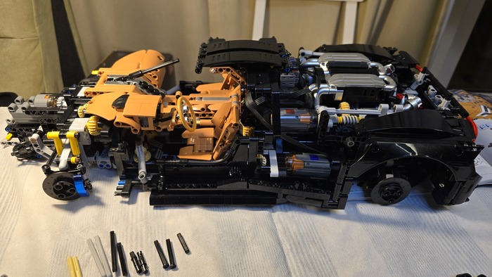 1. Модель всё таки хлипковата. Так как она движется, некоторые элементы попросту отваливаются в движении (типа элементы дизайна) и их придётся сажать на клей. Сказывается большое количество деталей, поэтому узлы сборки на которые приходится высокая нагрузка нестабильны. Если бы про эти узлы знал заранее, то я бы их склеивал. А так приходилось разбирать машинку в обратном порядке, чтобы добраться до проблемного места.