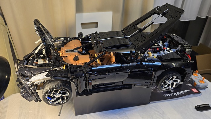 Выбирал долго, между машинами, танками, бульдозерами, кранами и т.п. А когда пришло осознание, что модели ещё и смогут выполнить какие-то базовые функции, то всё - беру! Мой выбор пал на модель спортивного автомобиля от фирмы Mould King.
