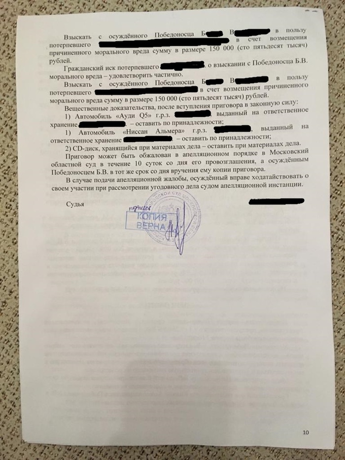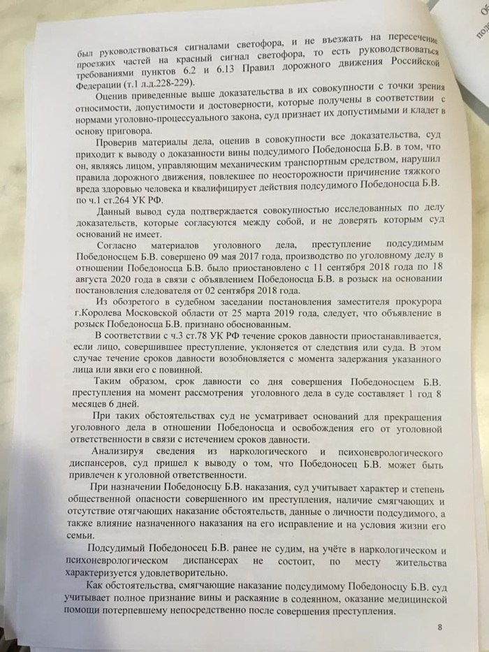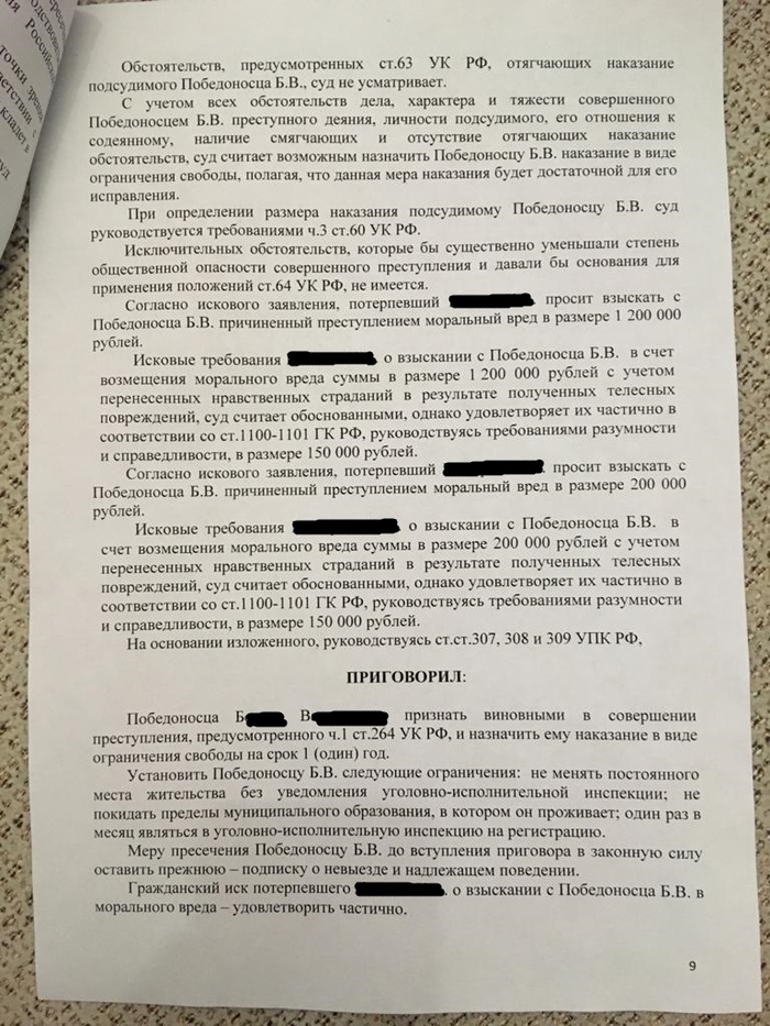 Долго не отвечал на пост, но вот наконец вроде все закончилось. Как итог: Победоносец/Болтуркевич признан виновным, водителю и одному из пассажиров компенсация по 150 000 рублей. Потерпевшую Екатерину П. вывели в свидетели. Обвиняемый на суде пытался давить на истечение сроков давности, но не вышло. Ну а выводы - делайте сами. Всем МИР! Друзья мои, тег #мое
