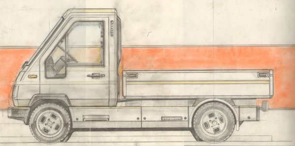 Итак, технология выбрана. Нужно было делать компоновку и дизайн. Решили остановиться на модной тогда полукапотной схеме, как наиболее удобной и безопасной для водителя. Полукапотник — это когда водитель сидит со смещением за переднюю ось. Таким образом отбирается часть пространства от грузового отсека. Но напомним, машина разрабатывалась с прицелом на серьезное производство и соответствие ее стандартам безопасности было обязательным.