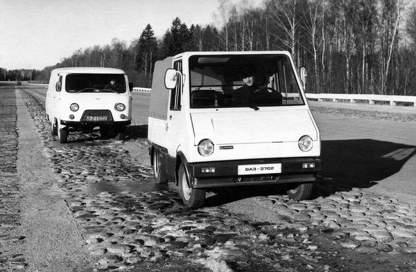 Условная «вторая серия» 2702 состояла только из ходового шасси, без кабины, его собрали в 1984 году. А в 1985-м свет увидели две машины с моторами ПТ-125 — белая бортовая, с тентом, под номером 009 (ее впоследствии ожидали весьма занятные приключения) и серебристый фургон под номером 005. Вот этим-то машинам и предстояло пройти самый полный комплекс испытаний, называемых государственные приемочные. Разумеется, над конструкцией тщательно поработали, сделали кое-какие перерасчеты, усилили то, что нужно. Поэтому результаты, полученные на полигоне, были в целом положительными. Но вновь отмечались проблемы с эргономикой водительского места и с надежностью отдельных узлов. Например, оторвался один из кронштейнов задней подвески, появился излом рамы в районе двигателя, сломался сам двигатель. Но все это произошло после довольно интенсивных «измывательств» над машинами, которые испытывали одновременно и вазовцы, и работники полигона, каждый по своей методике.