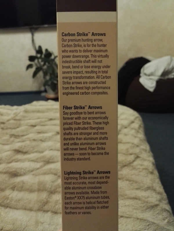 Нашли на балконе вот такие арбалетные стрелы. Упаковка должна быть из 6 шт, у меня же их 4. Они абсолютно новые. Хочу выяснить, реально ли их продать. Где? Какая примерно цена? Я гуглила по названию, пару дней убили на это с мужем. Нашли похожие только в одном месте, на ебее, цена 40 тыс, это цена была за карбоновые, у нас же lightning strike 2 Horton, облегченные что ли...., но как мы поняли, эти стрелы бывают из разных материалов и разных размеров, и 2 эти параметра очень сильно влияют на цену. Здесь общаются люди с разными интересами, возможно кто-то что-то знает про эти арбалетные стрелы. Заранее спасибо. Тапками сильно уж не кидайтесь. По возможности сама помогаю, чем могу, в этот раз сама прощу о помощи.