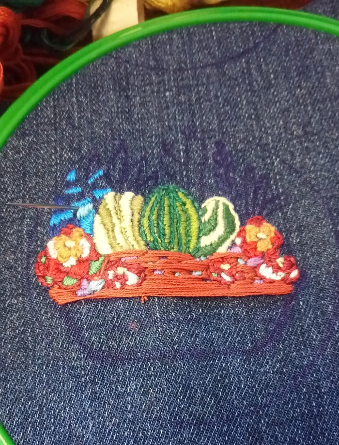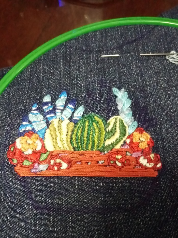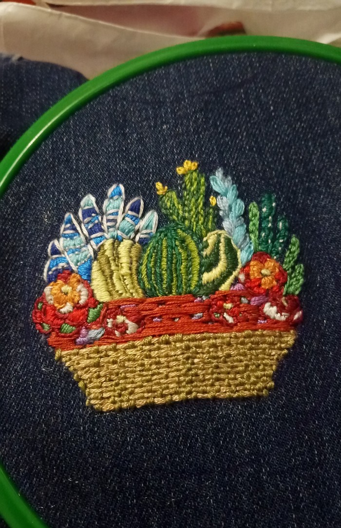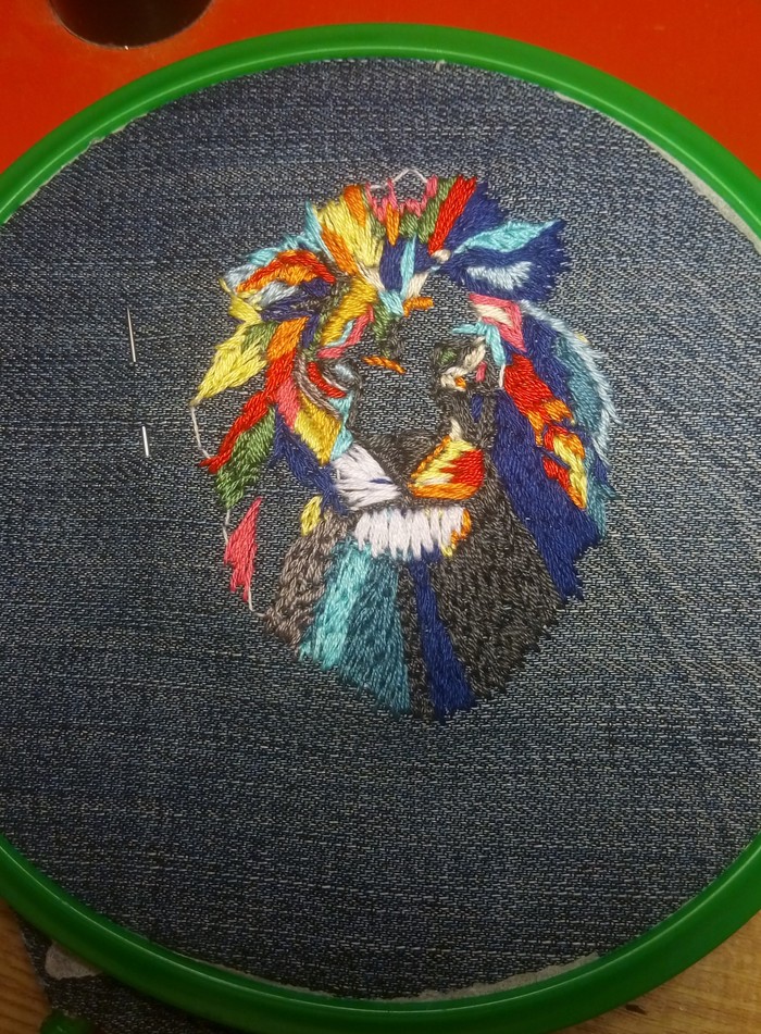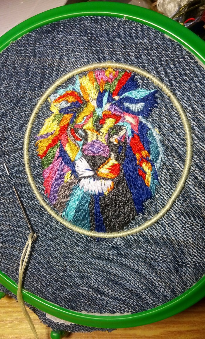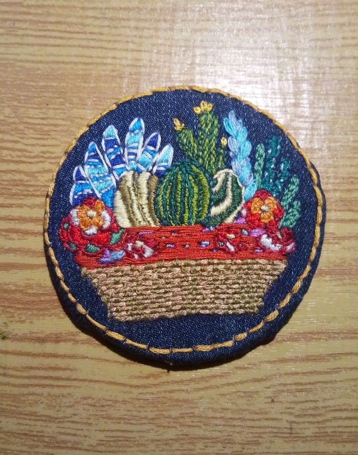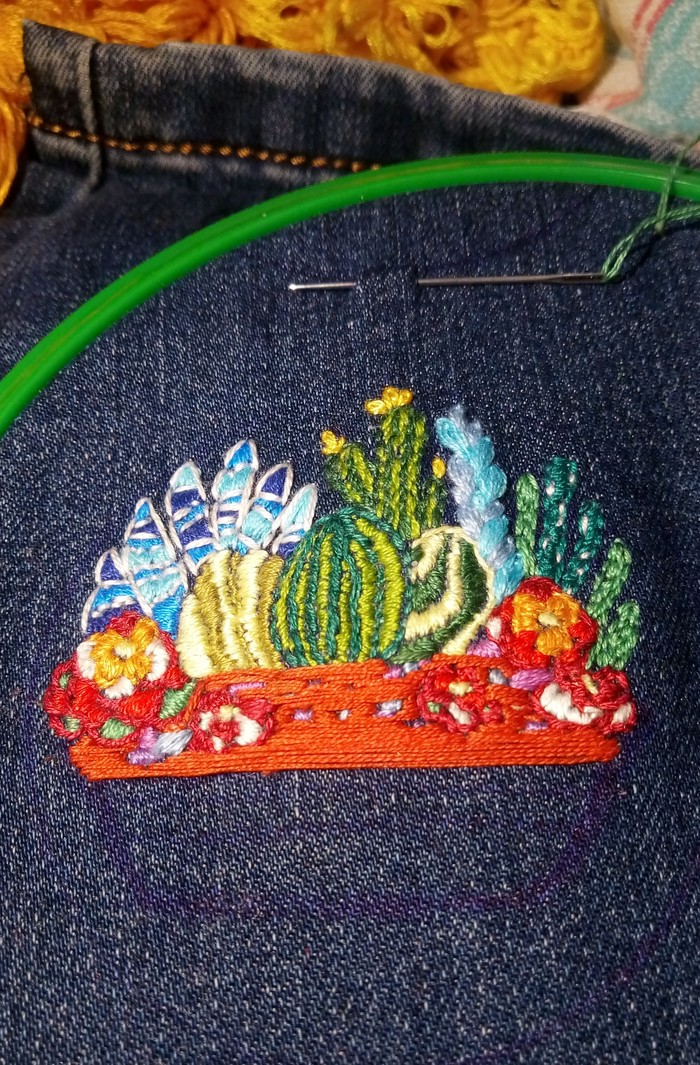 Вышивка выполнена гладью на стрейч джинсе. Нитки разные: ДМС, Кировка и другие безымянные...
