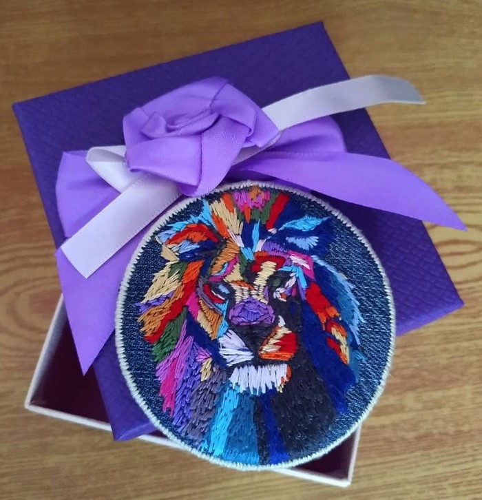 Подарено самому строгому учителю химии на свете. В первый год мы все её страшно боялись) даже хорошо выученное домашнее задание не избавляло от дрожи в коленях... А потом много лет спустя судьба нас опять свела вместе. И чувства изменились, и было очень приятно работать вместе. Она по знаку зодиака Лев. Я сразу знала, что подарю его ей) Надеюсь, он её радует)