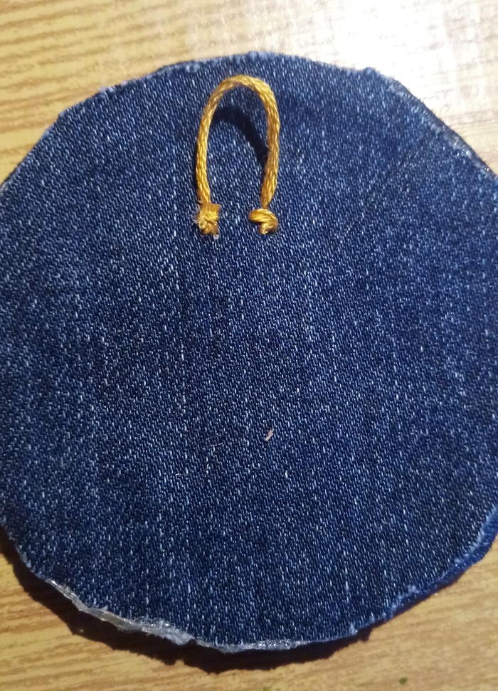 Пистолетом приклеила кусочек джинса с петелькой. И...