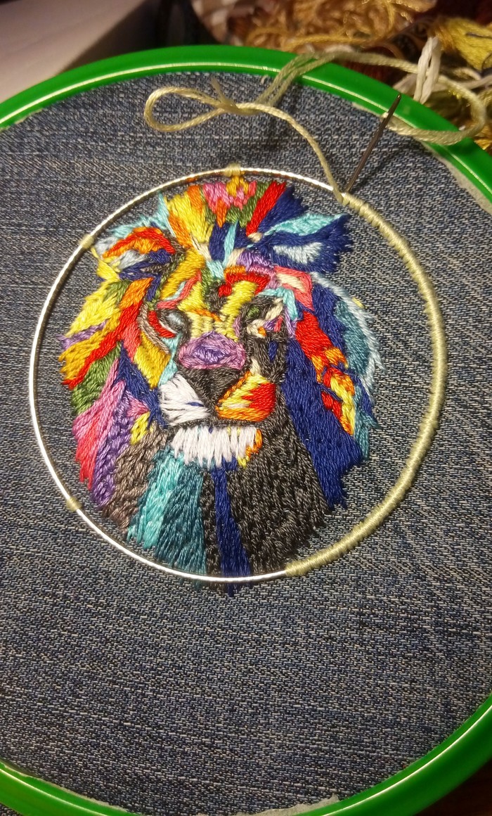 Вот увидела его и, как говорят, влюбилась! Сразу забурлила фантазия, потомилась немного и начался процесс. Если кто знает автора это Льва, напишите, пожалуйста, в комментариях. Прочитать такой шрифт нам не удалось.