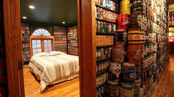 Как и любой другой коллекционер, Лебо выставил банки на самое видное место, ими украшены буквально все стены в доме ценителя.