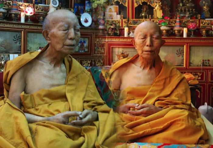 Сидя в позе лотоса, монах продолжал медитировать, звоня в колокольчик, чтобы показать другим, что он все еще жив. Как только звон прекратился, предполагалось, что монах умер. Гробницу запечатывали, а труп оставляли под землей еще на 1000 дней.