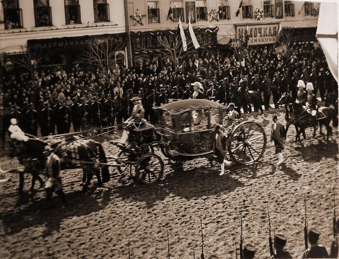 Карета с участниками церемонии коронации на Тверской улице в день торжественного въезда в Москву их императорских величеств