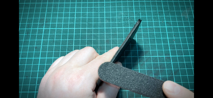 15. Обрабатываем торцы. Наносим краску для уреза. Черная.