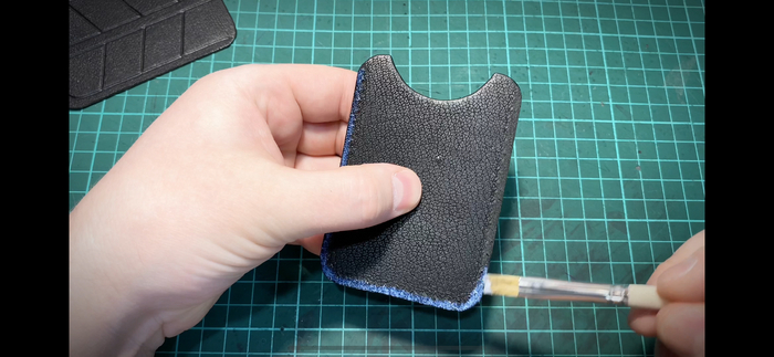 10. Обрезаем лишнее и приклеиваем подклад (тоже коза 0,5 мм).
