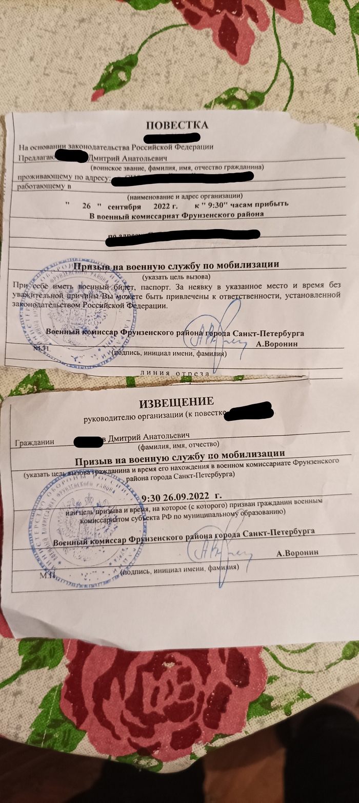 В общем, повесток пока больше не было, но кто-то интересовался по поводу оформления опекунства над престарелым родственником и сопутствующим получением инвалидности. Если что, порядок такой (как должно происходить у меня), через поликлинику записываетесь на МСЭ (медико-социальная экспертиза), нас ещё отправили на реабилитацию, т. к. инсульт. После МСЭ в опеку по вашему району, месту прописки, советую сразу заказать справку об отсутствии судимости, если через Госуслуги то до 30 дней, и справку о составе семьи, еë вроде как в МФЦ можно сделать, я пока с работой не могу в МФЦ забежать... Готовьтесь, что придëтся очень, ОЧЕНЬ много поездить. Я в С-Пб живу, разброс по точкам, которые нужно посетить большой, почти все концы города...