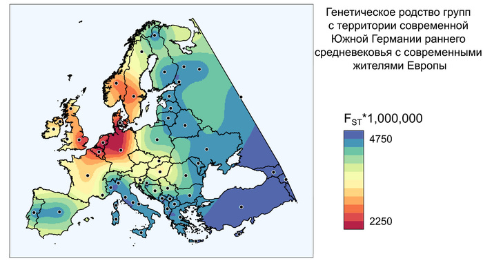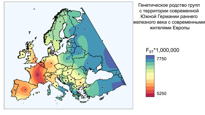 Однако усреднённая карта генетических расстояний охватывает ареалы обитания финских групп в России и на востоке Финляндии.