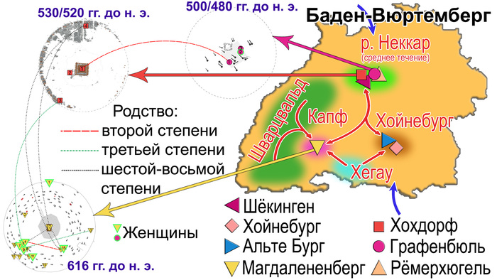 Чтобы получить более точную генетическую характеристику в пространстве и времени, авторы использовали попарную идентификацию сегментов ДНК идентичных по происхождению, чтобы сгруппировать анализируемых людей в связанные кластеры сходного генетического происхождения, а не по культурным или территориальным признакам.