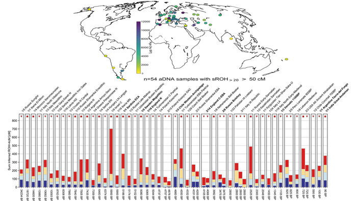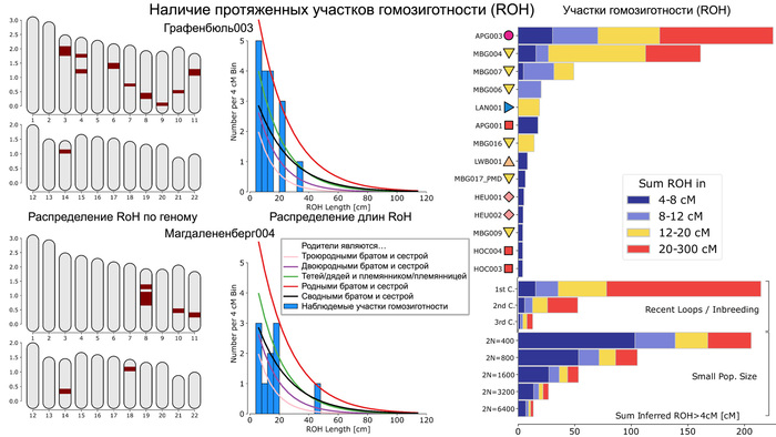 Помимо этого, анализ сегментов гомозиготности (ROH) не выявил значительного числа близкородственных связей, только 29 из 1396. При этом каких-то пространственно-временных или культурных закономерностей в распространенности близкородственных связей обнаружено не было. Зато авторы задокументировали первый случай однородительской дисомии по древнему геному (когда человек получает две копии хромосомы или части хромосомы от одного родителя и ни одной копии от другого родителя). Эта особенность обнаружена у представителя из Темясовских курганов позднесарматской культуры возрастом около 1700 лет.
