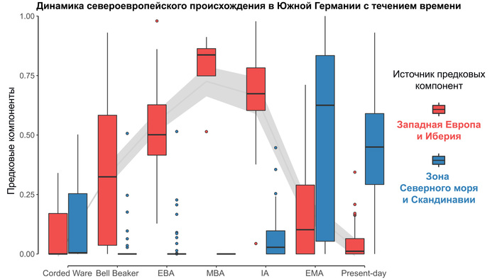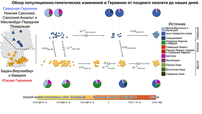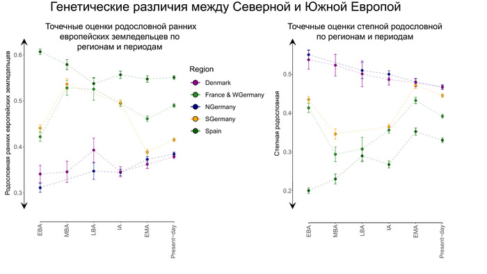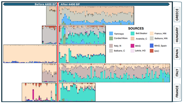 В различных регионах Европы вклад от степных скотоводов был связан с популяциями культур шнуровой керамики (КШК) (5000–4350 лет назад) и колоколовидных кубков (4800–4300/3800 лет назад).