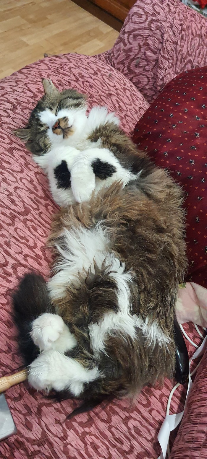 2. Я на работе вышел на склад, и кошка, с которой мы общались и я её кормил, принесла мне котёнка 🐱, 1.5 месяца на тот момент, 13 летие отпраздновал в этом году.