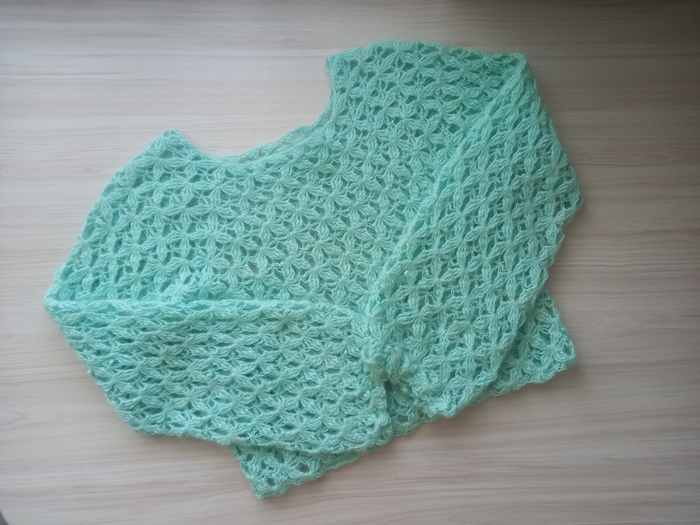 Вот эта накидка, которая связана КРИВО, я это вижу. У меня нет никакого желания её переделывать, тем более, все фотки уже отправлены админам чатика 🙂