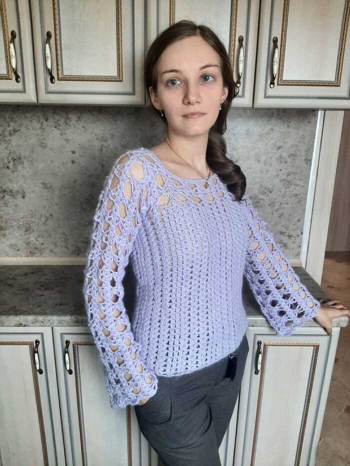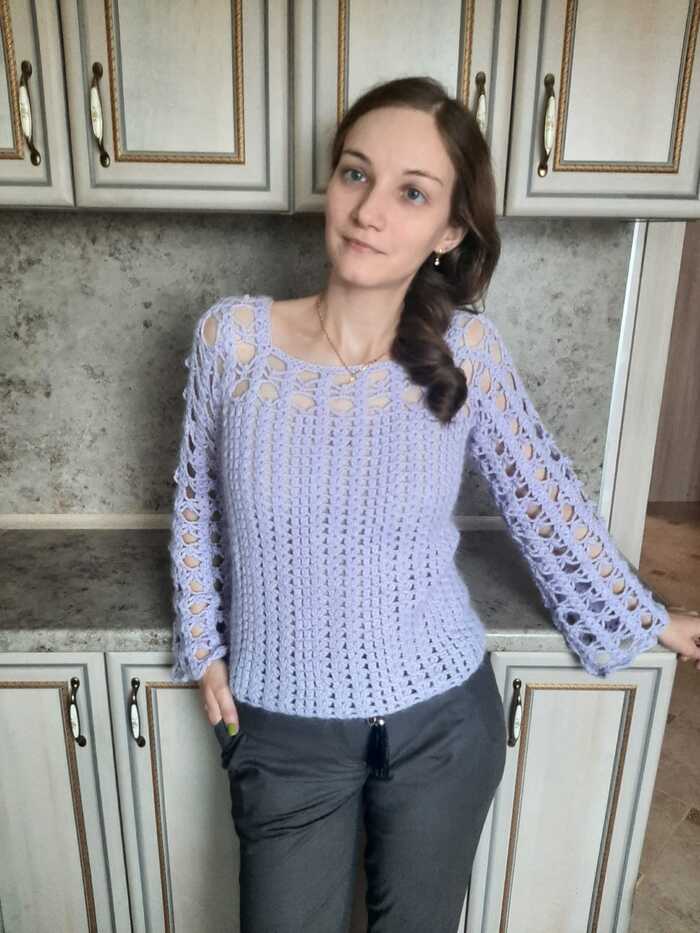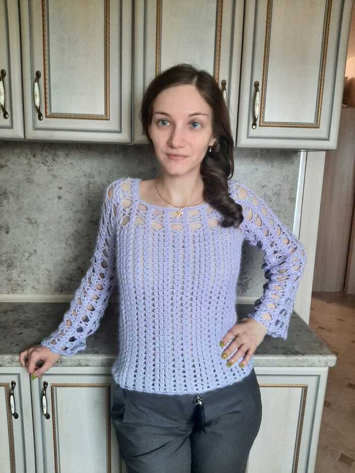 Всем привет! Давно связала этот свитер, но погода не позволяла его примерить. Сейчас как раз то самое время, когда можно в нем красоваться.