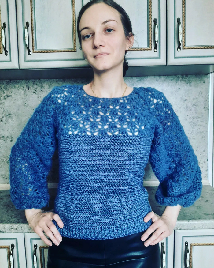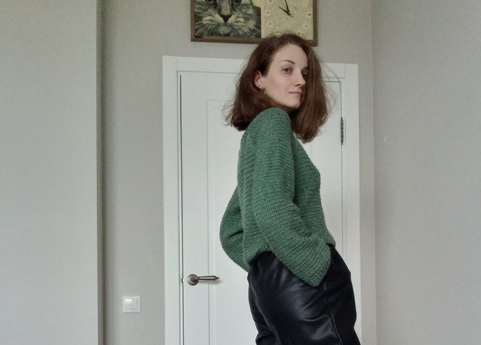 Всем пикабушникам пламенный привет! Наступила весна, пряжи скопилось довольно много, и я захотела по-быстрому связать джемпер на межсезонье.