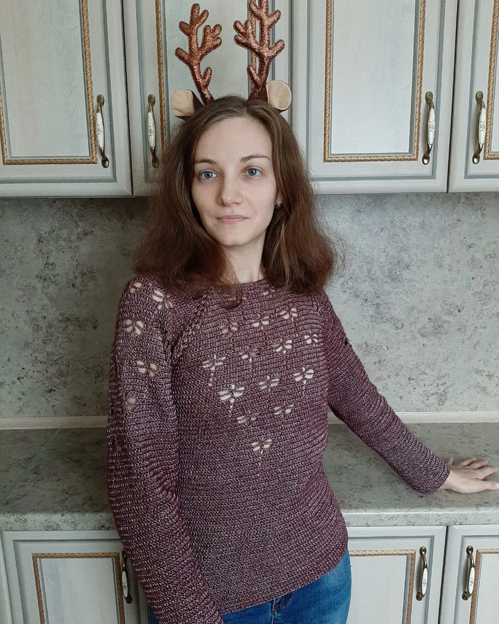 Я довольна джемпером, он приятный к телу, легко вязался и на такую дурацкую погоду в самый раз.