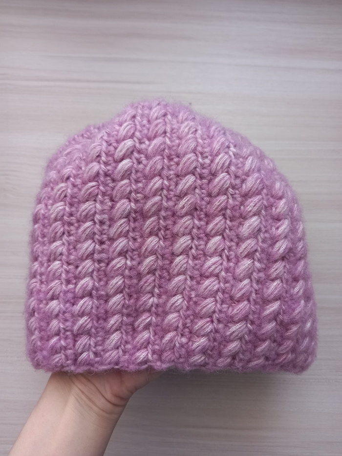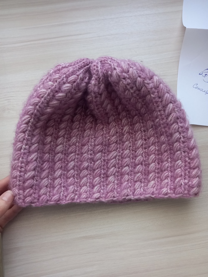 Шапочка подойдёт для более прохладной погоды, так как тут меринос и ниточка пушистая.