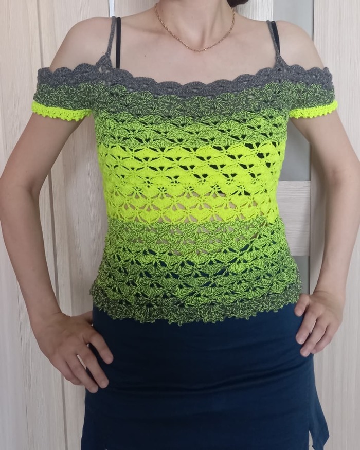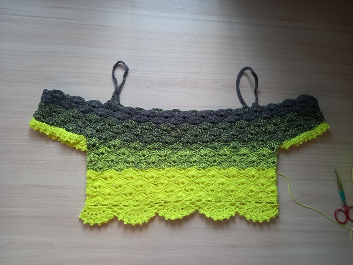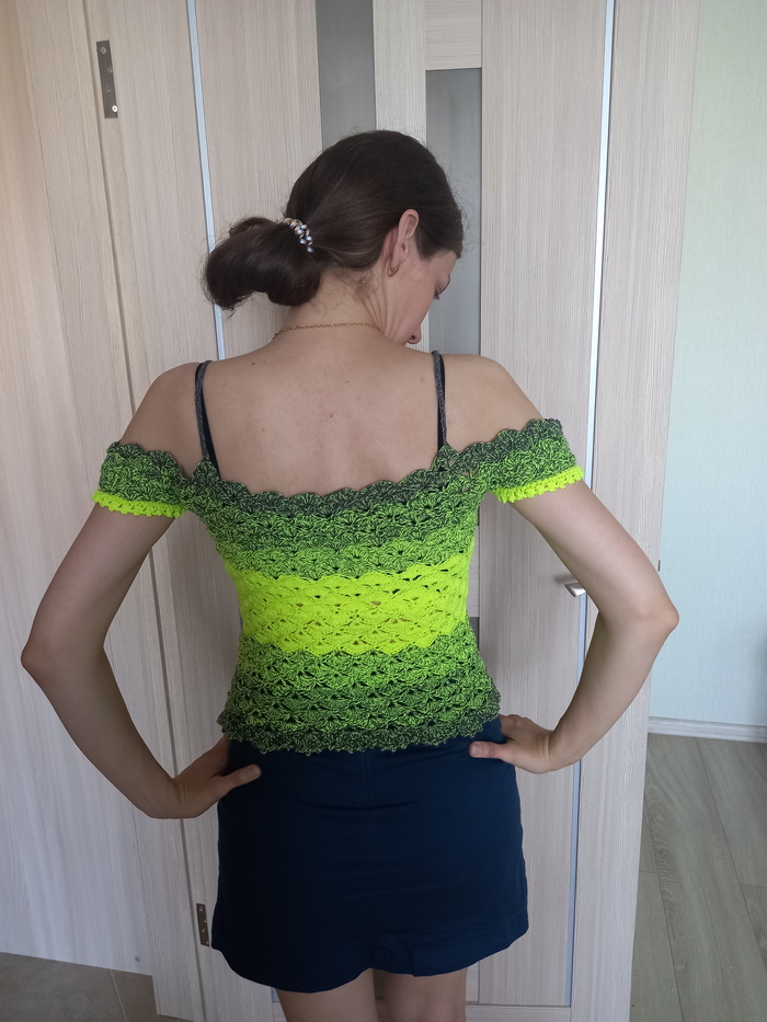 Я довольна результатом, ибо я не так часто делаю годные изделия подобного вида. Сейчас опять жахнет жара, и я испробую топ как следует.
