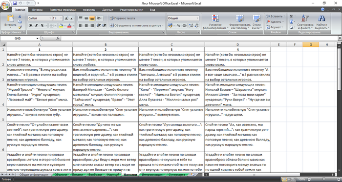 Затем по проторенной дорожке создаем экселевский документ для наглядности и против забывчивости, куда вписываем задания. Я хотела еще придумать что-то для красных, желтых и зеленых точек, но как описать все так, чтобы подходило по ситуации, не допетрила. Поэтому карточек всего ничего (слева для синих, справа - для белых):