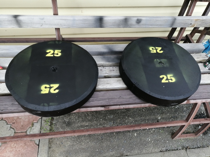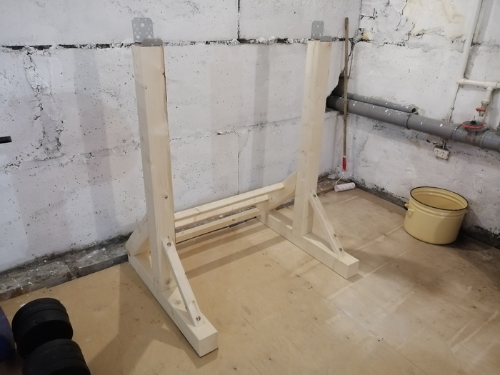 В августе мой тренажёрный зал, куда я ходил в городе затопило ливнями. Сказали ждать, пока всё приведут в порядок. Город у нас небольшой, второй зал находится очень уж неудобно для меня. Ну и посетила меня мысль, провести это время с пользой. Дом у меня частный, с большим подвалом. Там мастерская небольшая. Ну и решил я таки запилить себе свой спортзал. Начал с отливки дисков из бетона. Ибо железные стоят уж больно не приличных денег. Заливаю одни, вынимаю из опалубки, заливаю другие, потихоньку все сохнут. Отмерял по весу, но всё равно разбег небольшой есть. Но не критично. Потом купил брус и начал пилить. Шибко не торопился, работал по выходным и без фанатизма.
