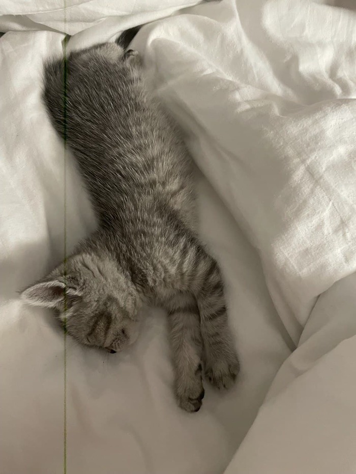 Ей предстояла ещё одна экскурсия (2, 3), поездка в город в котором мы обосновались, ночь в отеле, где она благополучно оставила 2 пятна на одеяле, так как крафтовый импровизированный лоток она не оценила (4, 5), поездка домой (7) с остановкой в кафе на покушать (6), вечерний поход к ветеринару с неприятными процедурами - принятие лекарств, чистка ушей, и купание изгоняющем гадости шампунем дома. Она много плакала, но справилась, и неплохо обосновалась в новом доме (8, 9, 10).