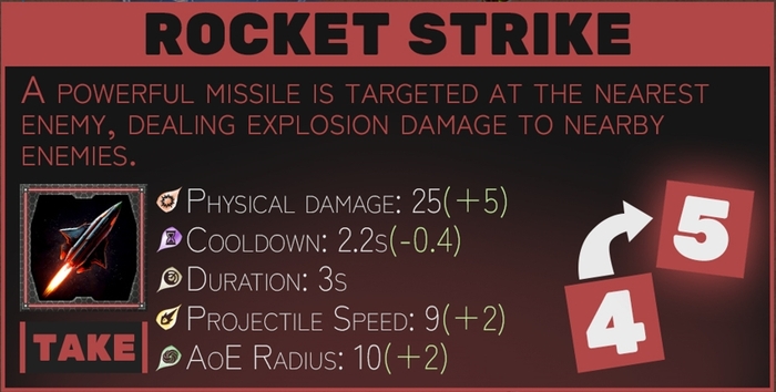 Всего у умений 5 уровней, где последний уровень значительно усиляет мощь эффектов. Уже взятые умения будут иметь больший шанс выпадения, чем те, что игрок еще не взял, позволяя стабильнее улучшаться до последних уровней. Механика также имеет скрытый приоритет, по которому типы умений назначаются для выбора(так называемая польза типов).