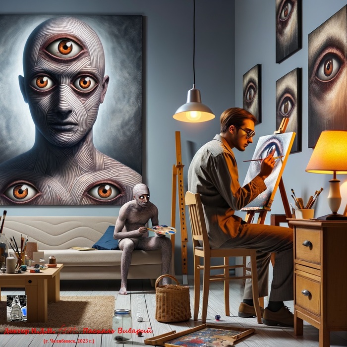 В этот промежуток безумной жизни через свои настенные шедевры он пытался людям открыть глаза на происходящее в обществе и мире, поэтому писал людей с тремя глазами.