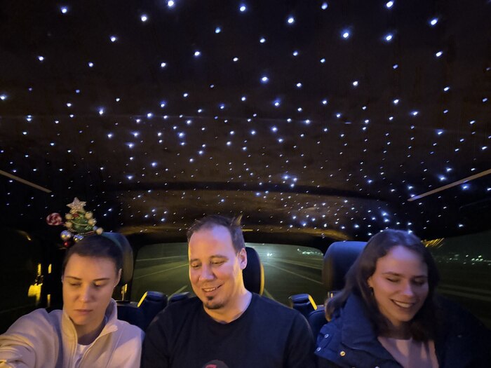 Но знаете, я бы отдела много больше, если бы знал в какое космо такси мы согласились сесть: там был черный потолок с небольшими декоративными звездами, а водитель включал на заказ любые самые немыслимые и мыслимые поп хиты. В общем, все были довольны (особенно я)