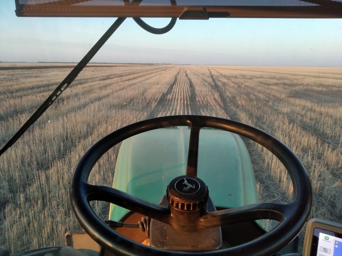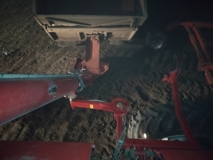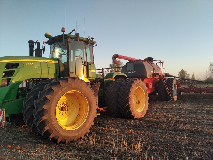 У меня сегодня ночная смена. Тьфу-тьфу-тьфу, поломки нет - пишу на ходу. Сеем пшеницу. Посевной комплекс "Horsch Sprinter NT". 15 метров захват. Таких комплексов 5. "Джонов" - 3 и 2 трактора "Claas". "Немцу" лучше - у него компрессор есть. У нас - щётка и тряпка. Кассеты дуются на базе - каждая смена свою привозит. При перемене - осмотр, смазка шарниров. В процессе работы - заправка посевным материалом и удобрениями. За смену агрегат засевает +/- 100 га. Зависит от нормы высева, длины гона, переездов между полями. Рапс засыпаешь - можно неделю не заглядывать в бочку) Ужин свой - бутерброды, чай, сухарики/печенье. Дневной смене обед фермер привозит. Готовит его мама, человек в преклонном возрасте. Поэтому так. Всем добра.