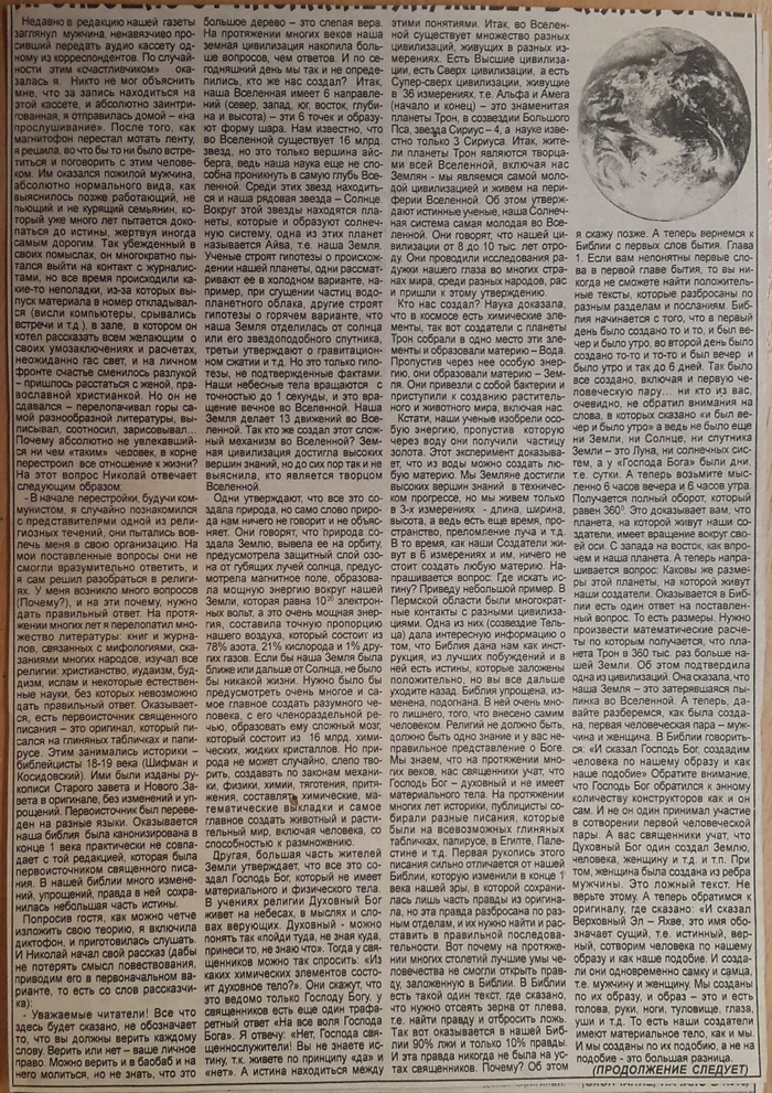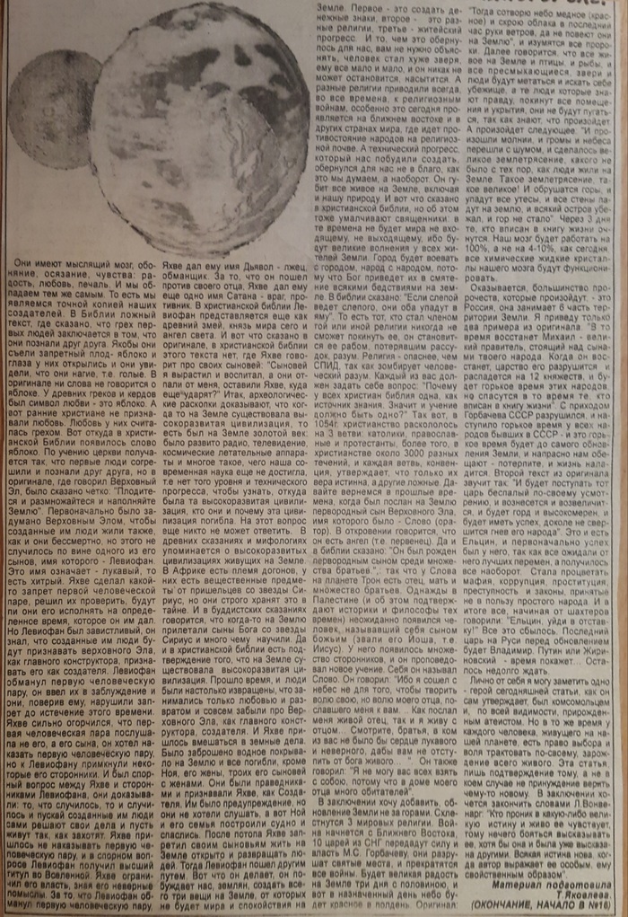 А у меня есть такая дичь)) Не мог я это не сохранить) Однажды в местной нашей газетке городской выдали вот такой материал) Дичь просто лютая. Но в итоге многие в городе стали верить в эту херобору. Короче, любителям всякого "рентэвэшного" к прочтению просто обязательно! На редкость забористая херня))