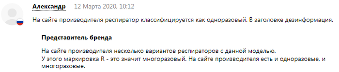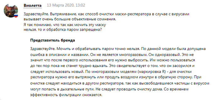 Целых 540 рублей, но зато многоразовый, замечательно, явно прослужит дольше нескольких часов, да и лёгкие мои мне явно дороже. Без раздумий заказываем, тем более в вопросах к товару продавец уверяет, что респиратор действительно многоразовый: