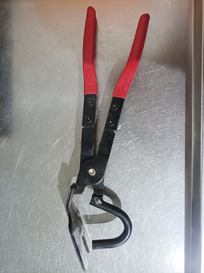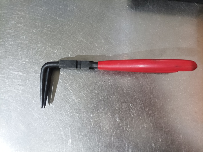 11. Инструмент для съема поводков стеклоочистителя. После кучи сломанных, остановился на этом. Клещи дополнительно подпиливаются болгаркой, для лучшего зацепа и вуаля! Простота и надежность. Оторвет дворник с мясом, но не сломается (не проверял, - осторожность не позволяла. Просто предположение)