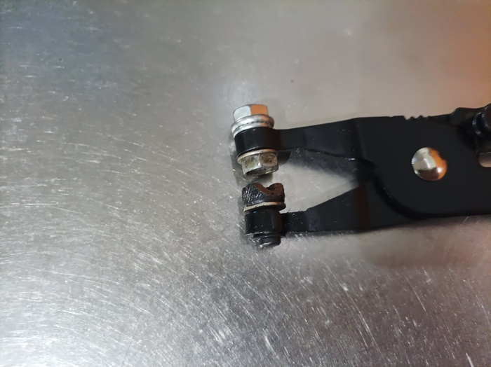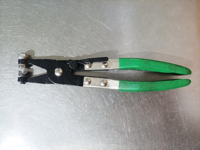 13. Инструмент для установки ленточных хомутов. Было до этого две штуки. Ломались одним и тем же образом. Здесь конструкция уже по-проще, и ленту высовывать легко. Но для этого опять же нужно немного доработать инструмент и сделать пропил. Пока не ломается и ломаться не собирается.
