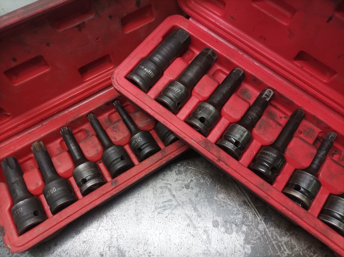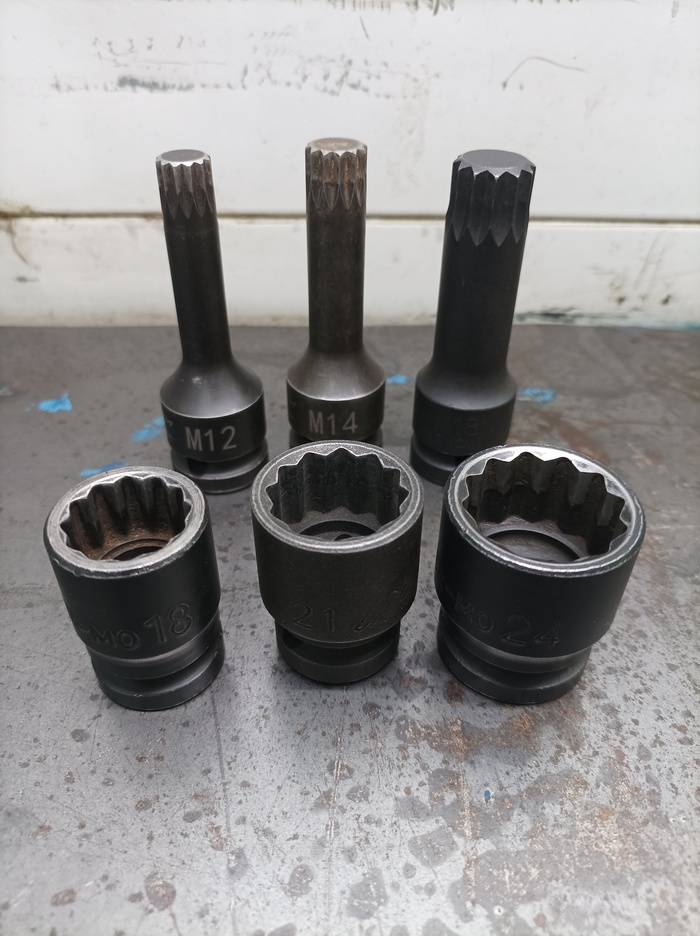 С наборами все ясно. Torx и шестигранники - самая используемая посадка. А вот покупать наборы для двенадцатигранных болтов и гаек (в основном для ремонта машин VWAG группы) я думаю не стоит. Достаточно обойтись вот этими шестью. Головки на 18, 21, 24 и биты на М12, М14 и М18