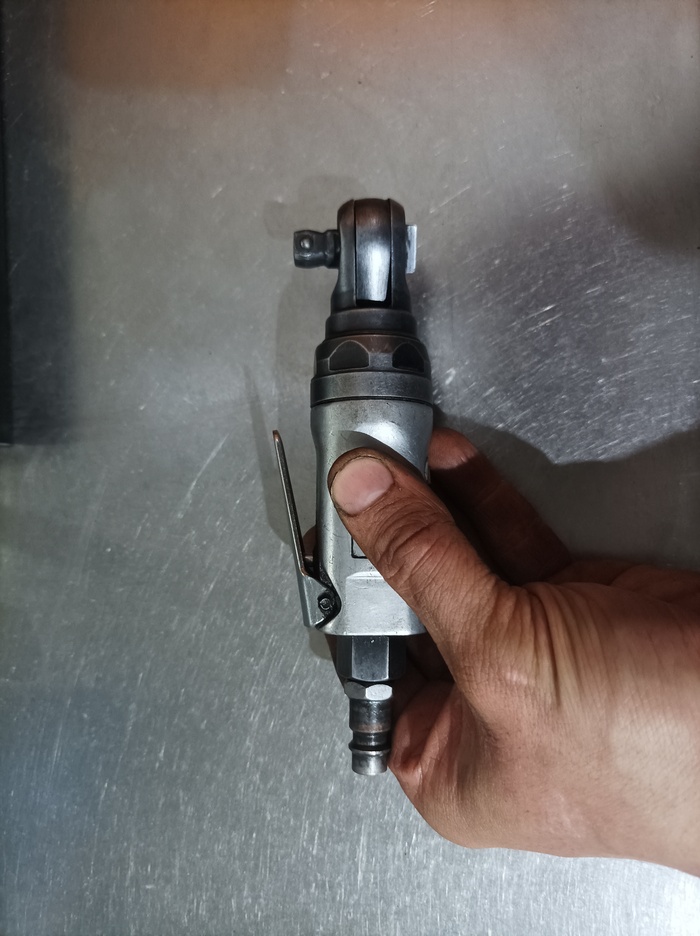 7. Короткая пневмотрещетка под 3/8. Много ходит споров среди механиков – что лучше, пневмоинструмент или аккумулятор… Мне по душе все-таки пневмо, в виду простоты конструкции