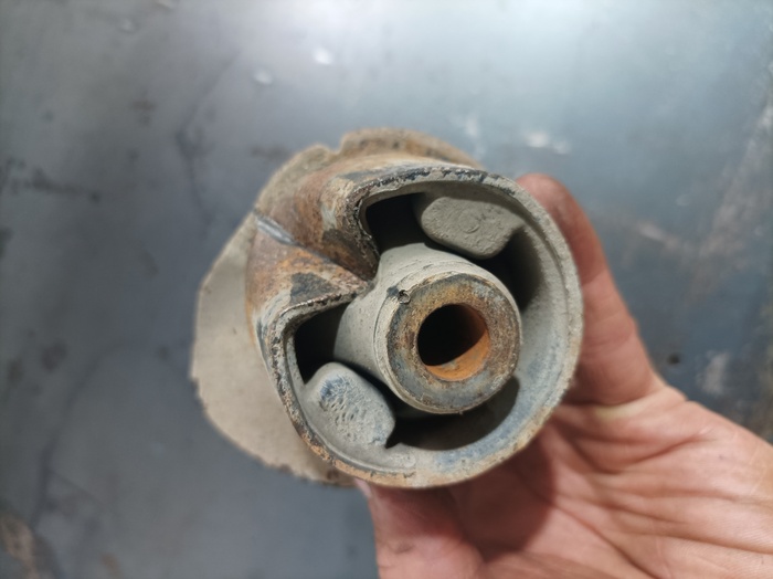 Заточенный определенным образом шток от амортизатора станет незаменимым помощником при замене. Принцип простой. Шило сминает внутреннюю обойму сайлентблока и одновременно проталкивает его (аккуратными нажатиями кувалды) с посадочного места.