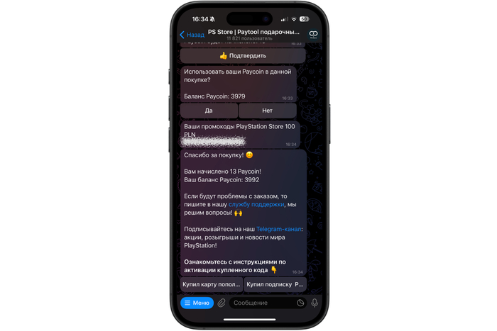 После завершения операции посредник пополнит ваш счет, и средства появятся в балансе PlayStation.