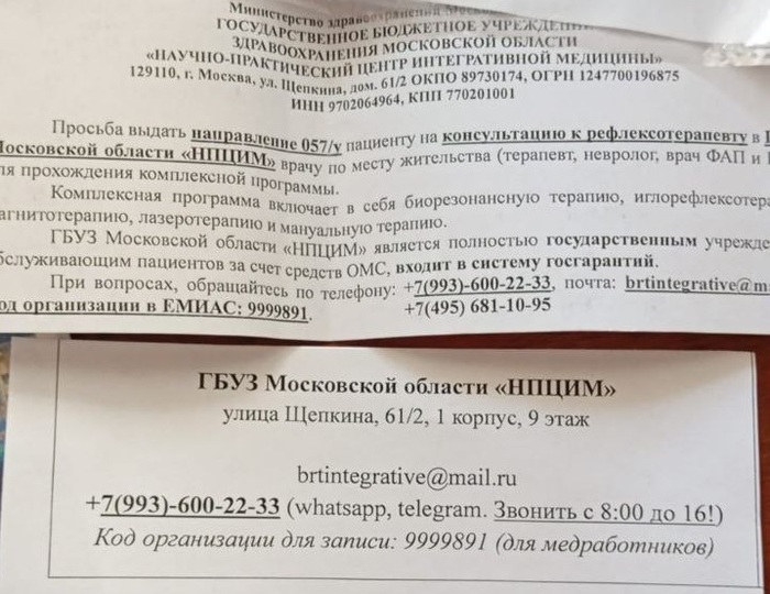 На что она мне объясняет, что взяла направление туда в нашей местной гос-ой больнице и пришла к ним. И отправляет она мне вот такую бумажку (ниже приложу). Сама бумажка больше похожа на какой-то рекламный флаер. Но мне стало интересно и я пошел гуглить.