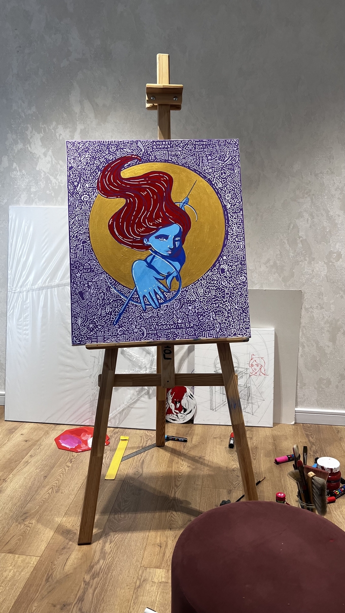 « Твоя бесконечная смелость, креативность и способность видеть прекрасное в самых неожиданных вещах вдохновили меня на создание этого произведения. Эту картину я написала специально для тебя. Я выбрала стили стрит-арт и современное искусство. Картина олицетворяет не только силу и женственность, но и ту неповторимую энергию, которую ты несешь в эту жизнь. Твоя бесконечная смелость, креативность и способность видеть прекрасное в самых неожиданных вещах вдохновили меня на создание этого произведения.