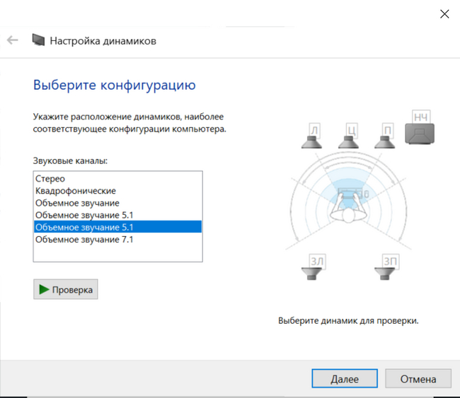 2) Подключаем ноутбук и проигрыватель по HDMI и в ноуте появляется возможность включить 5.1 звук, при тестировании каждая колонка соответствует звуку.
