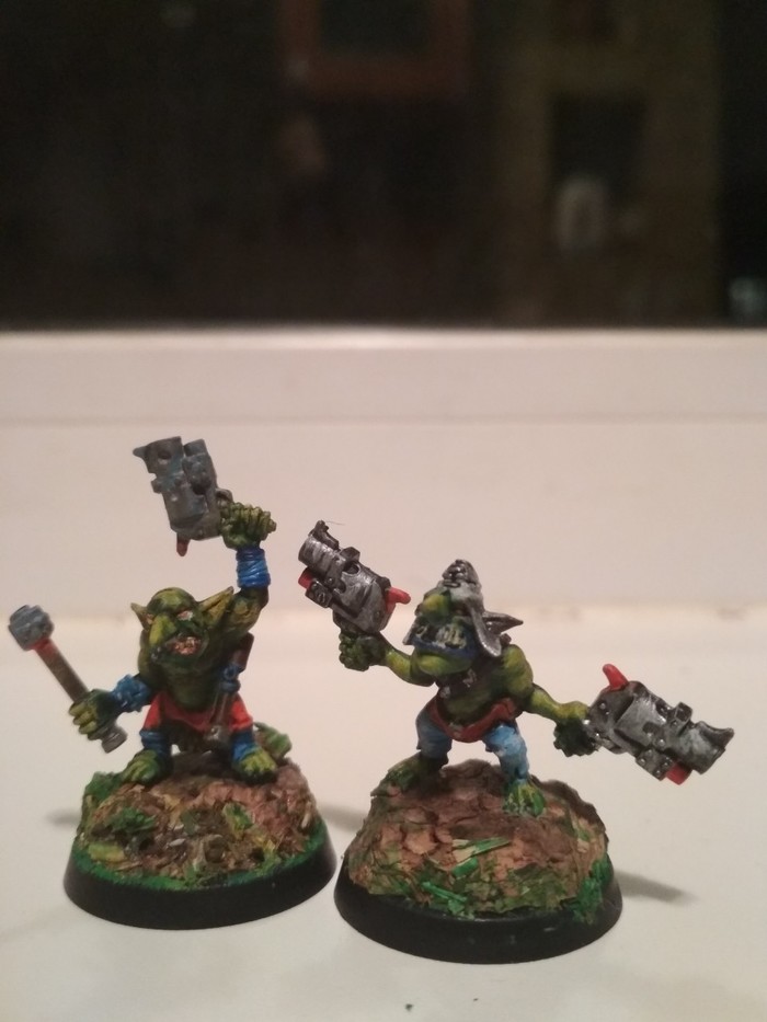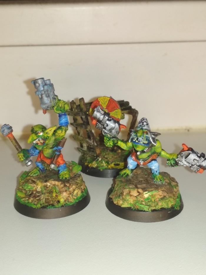 Да, танка нет. Но если начинать хобби, то с малого, правда? Изначально, только открыв и посмотрев, я проклял этот набор и весь вархаммер. Пиздюки с ноготь. С моим зрением? Но потом, взяв прадедушкин монокль, я посмотрел и понял, что они ахуенны. Ух, блять как я бежал домой. Ух, блять, как я хотел все покрасить. ЭТО БЫЛИ ЧАСЫ БОЛИ И СТРАДАНИЯ, но они принесли мне кучу положительных эмоций. Одному Богу Императору известно как я скрафтил свою первую миниатюру. На ваш суд, господа. Гретчин орков. Немного стыдно это выкладывать, но я надеюсь на советы, ибо парней этих ещё 9 штук. Ну и бооольшой орк. Он меня пугает)
