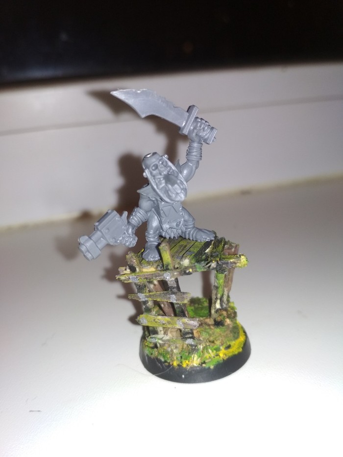 Читая славный Пикабу, наткнулся я на пост про миниатюру какой-то вундервафли. Ну я парень любопытный, по нику видно.. Я и спросил, что это такое.. Сказали, что танк. Честно говоря, на танк это было совсем не похоже, как инженер и обладатель медали Колобанова вам говорю. Было похоже на стимпанковский драндулет из игры Хроники Валькирии.. А так как это одна из моих любимых игр на пк, я спросил ещё. Сказали это не просто танк, а танк из Вархаммера. Ну я как бы все понял и пошёл в Википедию. А потом по форумам. А потом на ютуб. И если раньше жена мне говорила: бросай пиво, то теперь орала оставь ютуб, ребёнок голодный.. Но я был непреклонен. И, выебав себе мозг, я решил, что да. Хочу, сука, танк из Вахи. И, ВНЕЗАПНО, я влюбился в орков. А так, как я слепой и руки из жопы, то выбор пал на недорогой набор с большим количеством миниатюр. И вот вместо танка получилось это:
