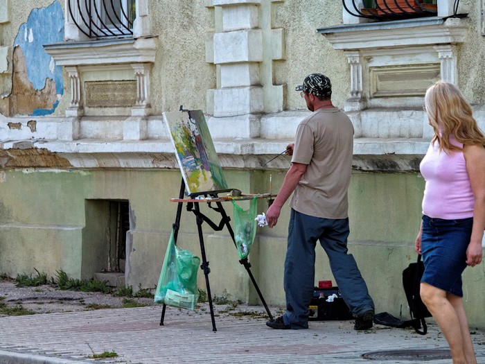 47 Pentuer Лига фотографов Рисуем Евпаторию 4 года назад Город Евпатория, переулок Лукичева, весна [моё] Крым Евпатория Уличная фотография Уличная живопись Люди Художник Фотография 1 Ещё 0
