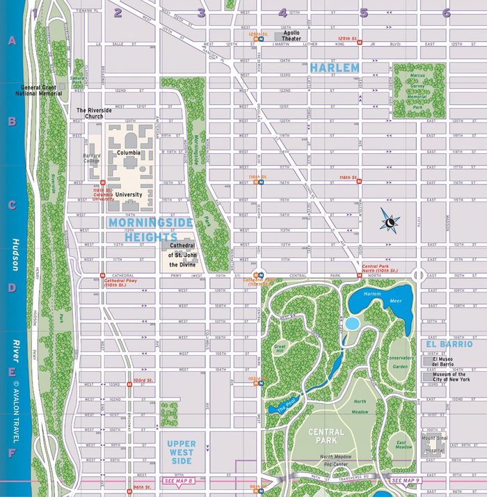 Горизонтальные улицы севернее нижнего Манхеттена нумеруются от 1 до 190 которая находится на севере острова. Авеню же — это вертикальные улицы. В южном Манхеттене все как в обычных городах, но на большей части острова эта сетка работает фантастически.